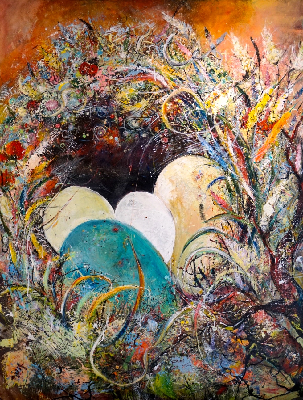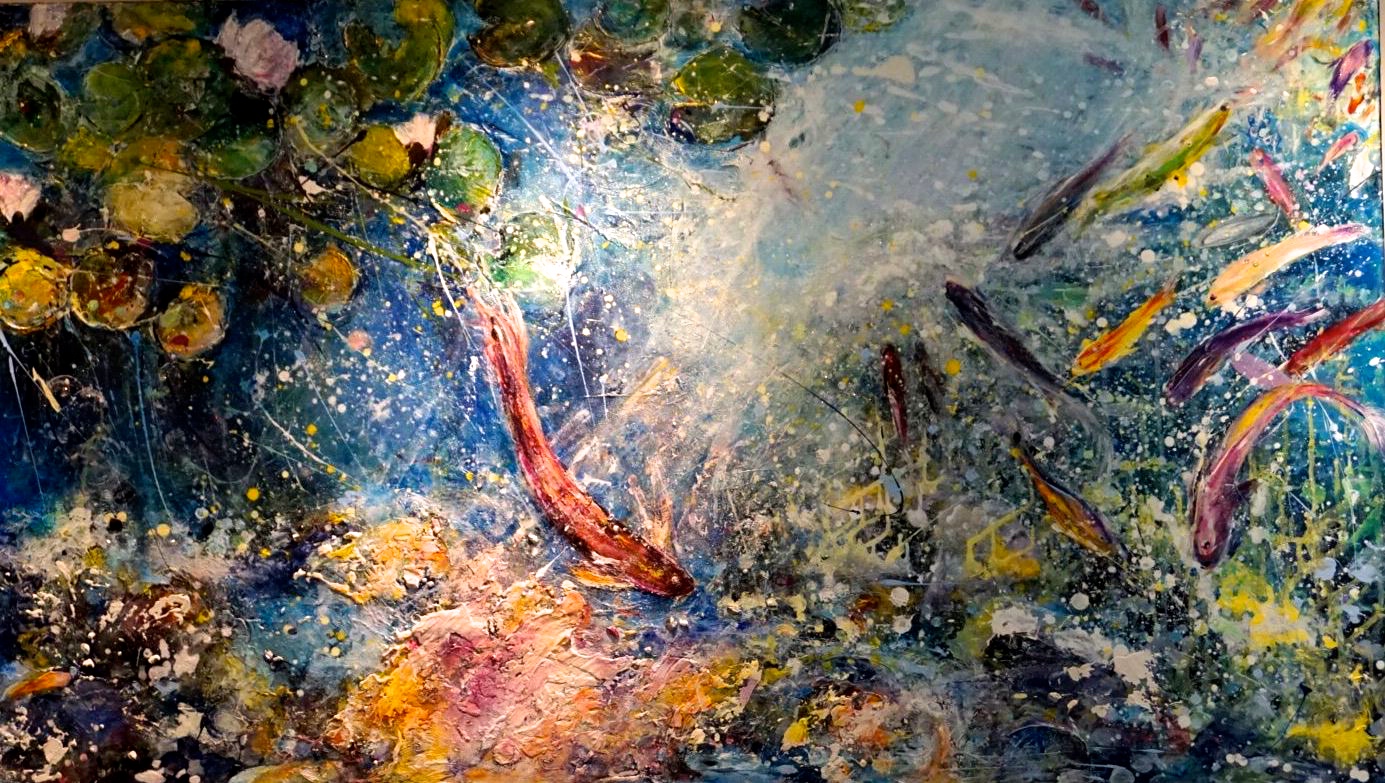 This collection is of large nature and landscape paintings, created with layers of acrylic mixed media on canvas, and inspired by nature.